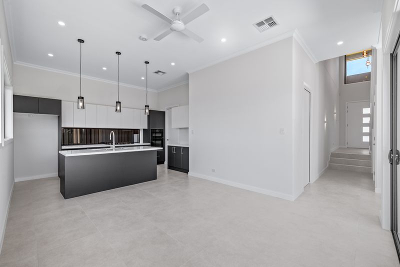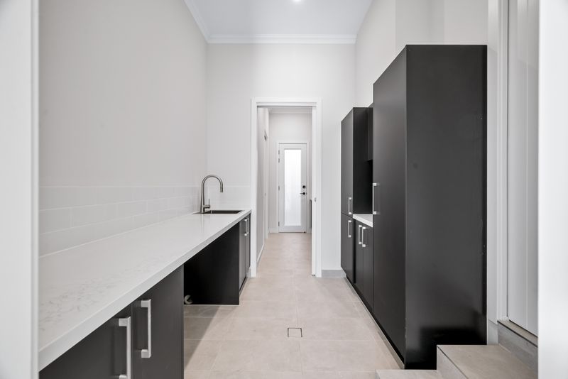 • The sleek open-plan kitchen boasts a spacious island bench, high-quality appliances, gas cooking, a stylish window splashback, and a convenient butler's pantry.