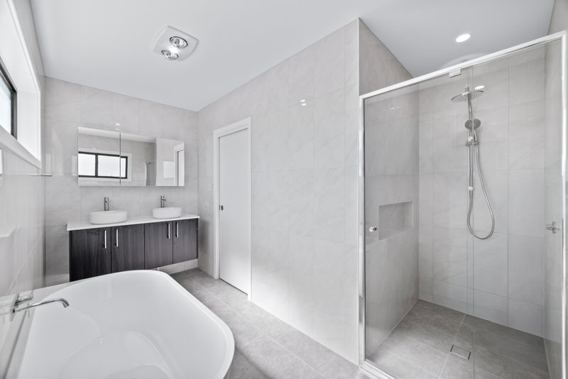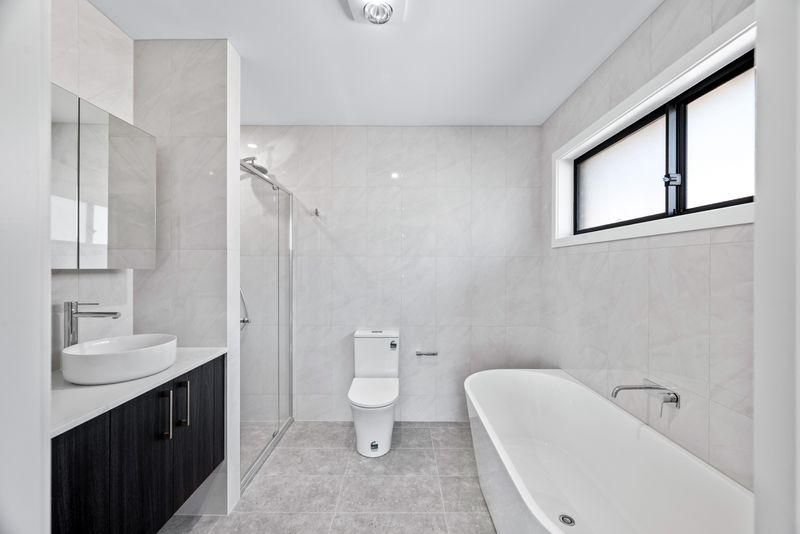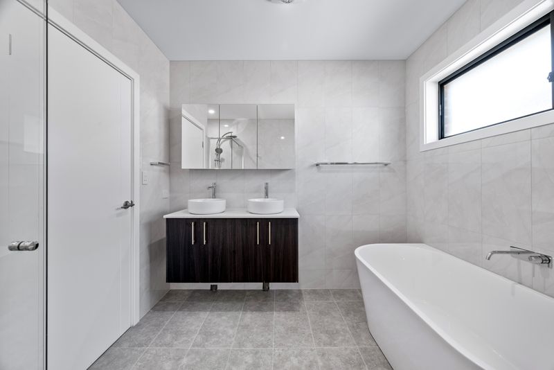 • The master suite features a walk-in wardrobe and a luxurious ensuite with a bathtub and modern finishes with a private balcony that adds an extra touch of sophistication. Bedroom 2 also includes its own walk-in robe and ensuite, offering both privacy and comfort.
