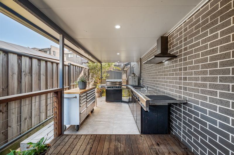• The kitchen is a chef's delight, offering extensive bench space and storage, a large breakfast bar, quality appliances, and a 6-burner gas cooktop. It is complemented by a functional butler's pantry