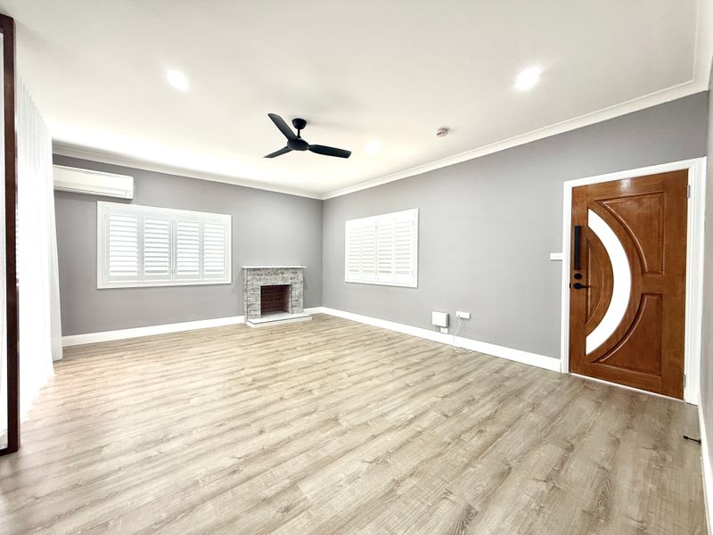 * Spacious open-plan living and dining area with split-system air conditioning and ceiling fan