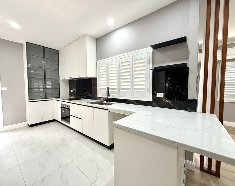 * Stylish, modern kitchen featuring quality appliances, stone benchtops, and ample storage