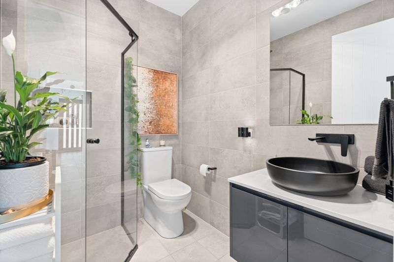 • 3 beautifully appointed bathrooms with sleek black tapware, floating vanities + rainfall showers to all bathrooms + bathtub