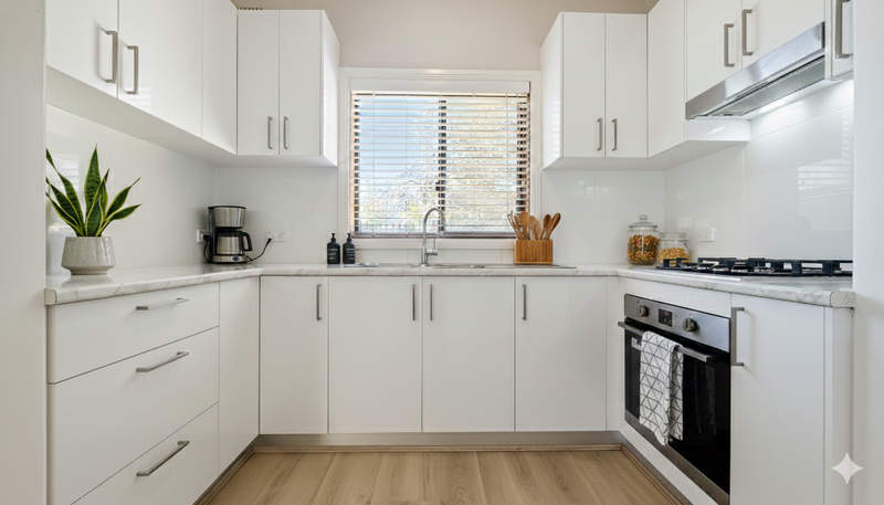 • Functional Kitchen: Plenty of overhead cupboard space.
