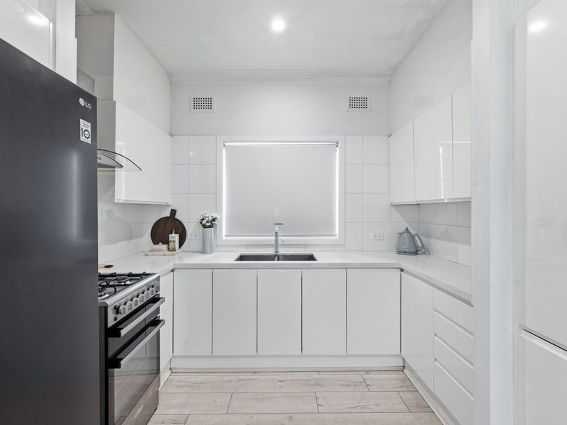 Inside, the home feels fresh, bright, and inviting, with a thoughtfully designed layout that maximises space and natural light. The pristine white U-shaped kitchen sits at the centre of the home, complete with ample cabinetry. Multiple living zones include a spacious front lounge for formal gatherings and a separate rear living area that flows seamlessly outdoors.