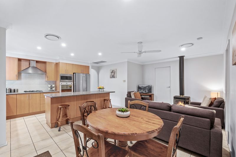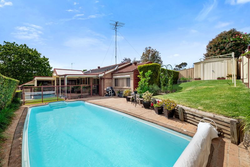 This inviting residence offers four generous bedrooms, while the master features a walk-in robe and private ensuite for added comfort. The heart of the home boasts an open-plan kitchen, dining, and family area that flows effortlessly to the outdoor patio, perfect for entertaining or relaxing by the pool. The kitchen is equipped with quality appliances, gas cook top, ample bench space, and a central island, making it ideal for family gatherings. The main bathroom is well-appointed, featuring a separate bath and shower, while a spacious internal laundry provides convenience and practicality. Step outside to an entertainer's dream a large covered patio overlooking the sparkling in-ground pool, creating the ultimate space for summer BBQs and family fun.