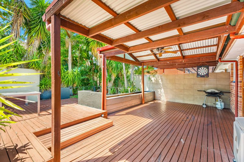 • Private, fully fenced backyard with established landscaped gardens + storage sheds