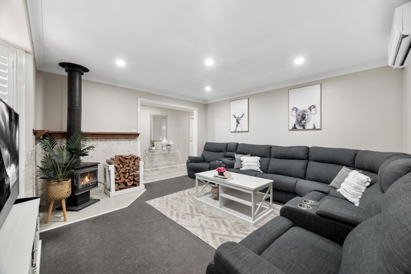 Step inside to discover a modern interior that feels both warm and welcoming. Plantation shutters and roller blinds are fitted throughout, adding a clean, contemporary finish while providing excellent light control and privacy. The main living area is designed for year round comfort, featuring a split system air conditioner and a fireplace, making it the perfect space to relax or entertain no matter the season