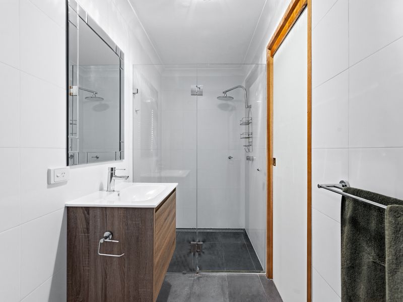 • Massive timber entertaining deck with a ceiling fan, perfect for large gatherings.