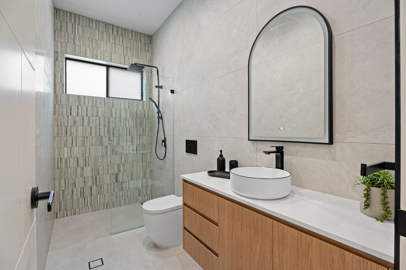 • Three Designer Bathrooms: Ultra-modern finishes featuring floor-to-ceiling tiles, matte black tapware, floating vanities, and a freestanding bathtub.