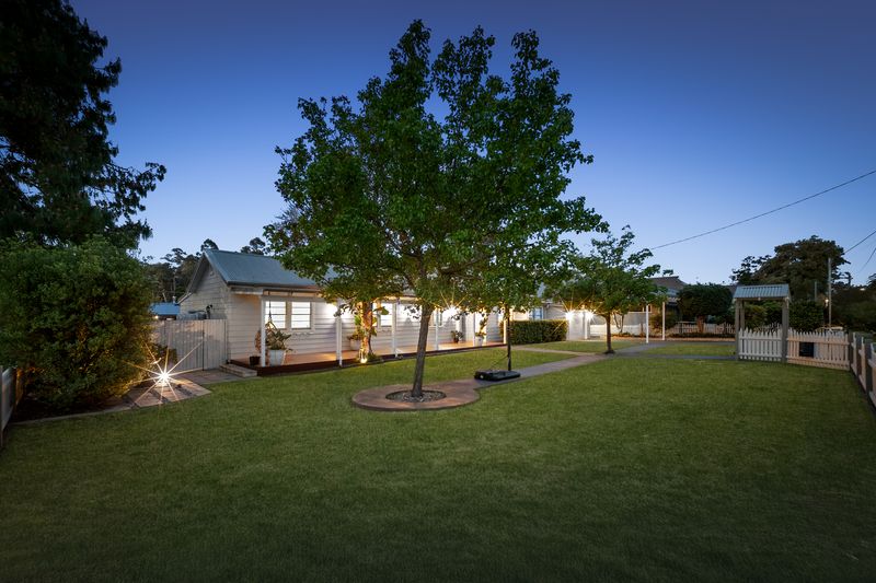 • Additional features include polished floorboards throughout, ducted air conditioning, plantation shutters, downlights, a cozy fireplace, and fully fenced, manicured lawns with side access and garden sheds