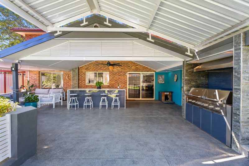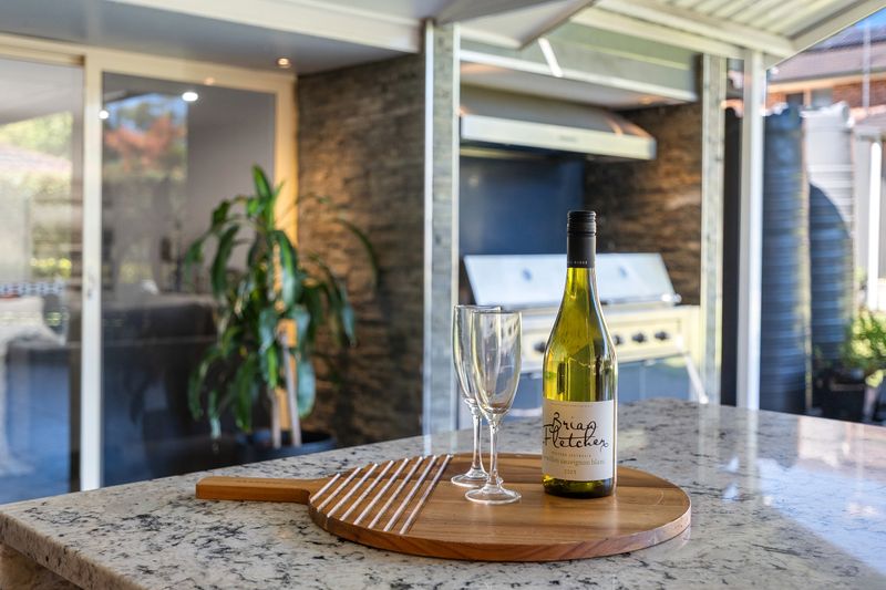 At the heart of the property lies a modern, light-filled kitchen equipped with a 6-burner gas cooktop, generous storage, and a practical layout ideal for families and entertainers alike. Flowing seamlessly from the interior is a magnificent covered outdoor entertaining area, complete with a ceiling fan, built-in BBQ, and a beautifully crafted stone seating zone a superb setting for hosting guests or enjoying alfresco dining while overlooking the private, landscaped grounds.