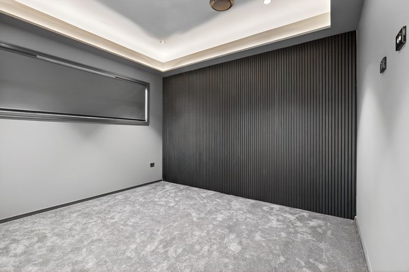 Thoughtfully designed for the modern family, the floorplan boasts five spacious bedrooms and multiple living zones spread across two levels. The ground floor features a dedicated theatre room perfect for cinematic evenings, while the upper level provides a secondary living hall that opens to the void below, creating an incredible sense of space. The primary bedroom serves as a private retreat, featuring a massive walk-in robe, a lavish ensuite, and direct access to a private balcony that offers a peaceful outdoor escape. The remaining bedrooms are equally well appointed, featuring mirrored built-in wardrobes and proximity to beautifully finished bathrooms.