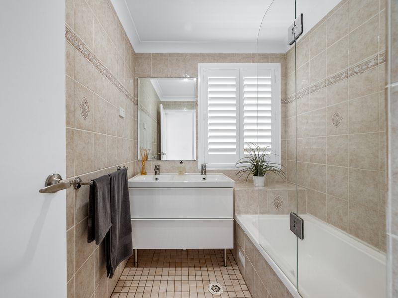 • Floor-to-ceiling tiled bathroom complete with a bathtub-ideal for young families.