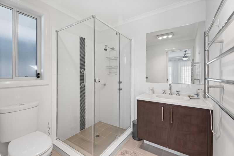 • The master suite includes a walk-in robe, a private ensuite and a ceiling fan