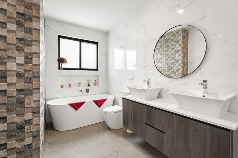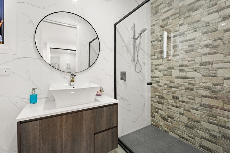 Each of the five great sized bedrooms boasts their own private ensuite featuring premium finishes, floor to ceiling tiles and rainwater shower heads, along with mirrored robes for ample storage. Study areas are positioned both upstairs and downstairs, perfect for working or studying from home.