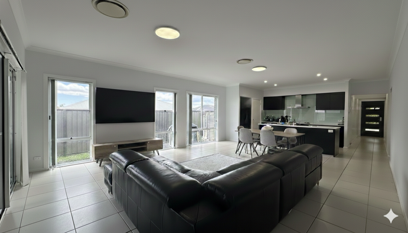 • Open-Plan Living: A vast, sun-drenched living and dining area that flows effortlessly out to the backyard.