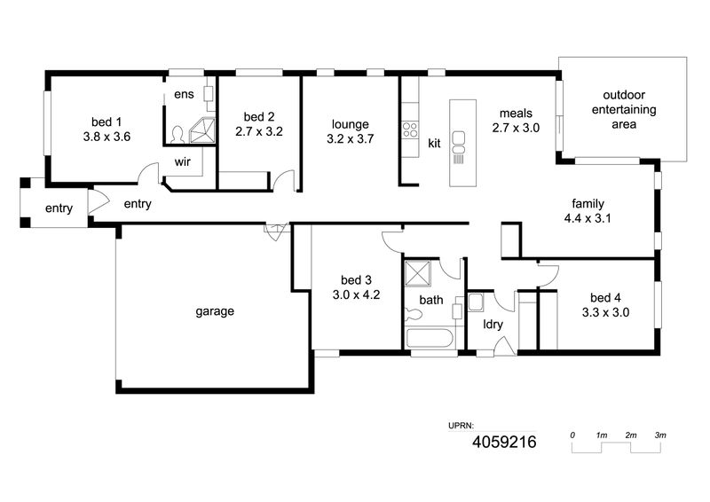 The master bedroom is privately positioned at the front of the home and includes a walk in wardrobe and ensuite, while the remaining bedrooms are serviced by a central bathroom. A separate lounge room provides additional living space, complemented by an open plan family and meals area adjoining the well appointed kitchen with island bench. Stepping outside, the home continues to impress with a covered outdoor entertaining area, perfect for relaxing or hosting guests. A double garage with internal access and a dedicated laundry further enhance the practicality of the home.