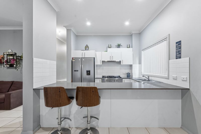 This residence offers four generous bedrooms across the upper level, while the master suite features a walk-in robe and private ensuite for added comfort. The heart of the home on the ground floor boasts an open-plan kitchen, dining, and family area that flows to the outdoor patio and level backyard. The kitchen is equipped with quality stainless steel appliances, a gas cooktop, ample bench space, and a breakfast bar, making it ideal for busy mornings and family gatherings. The main bathroom is well-appointed with a separate bath and shower, while a dedicated internal laundry and additional powder room downstairs. Step outside to a covered patio overlooking a neat, low-maintenance lawn.