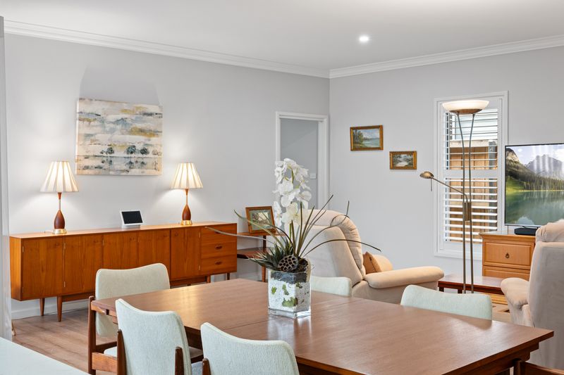 Designed for relaxed family living and entertaining, the open plan layout flows seamlessly to the alfresco area via stacker doors with elegant curtains, overlooks a much larger backyard than you would expect for a duplex. Positioned on the high side of the street allows you to capture the stunning mountain views and unforgettable sunsets.