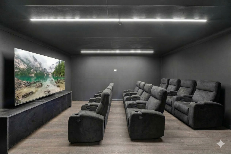 The lower ground floor serves as the ultimate entertainment hub, where durability meets style. The massive rumpus room and gym areas are finished with a professional-grade epoxy floor, a feature that extends into the oversized garage to ensure every inch of the home is polished and practical. This level also houses a dedicated theater room, perfect for immersive movie nights away from the main living areas.