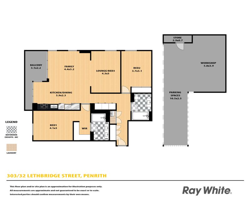 • A massive 5.8m x 3.9m workshop plus an additional store room, alongside tandem parking spaces, a rare find in apartment living with a power point for electric car charging