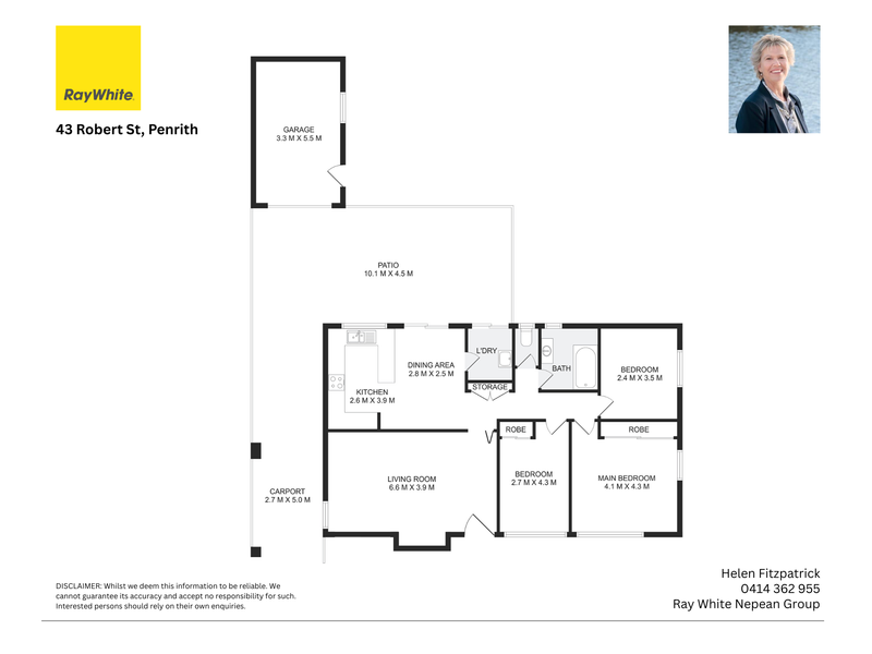 I would like to say that I have been dealing with Helen Fitzpatrick for a number of years. I always found her very helpful and honest. I highly recommend Helen and Ray White Penrith. Bill