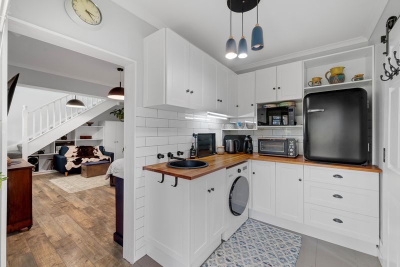 • Excellent vehicle accommodation with a double lock-up garage featuring internal access, a secondary storage area, and a sprawling driveway for additional off-street parking.