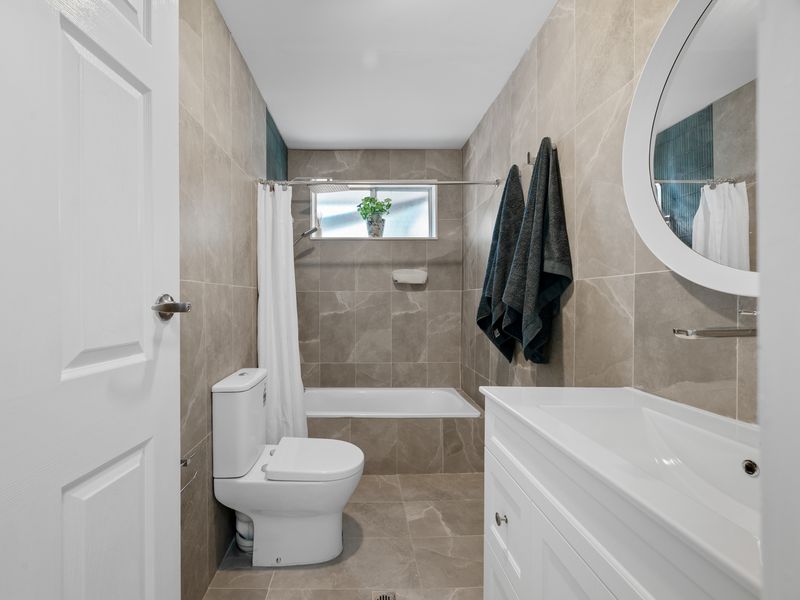 • Three stunning bathrooms across the home, featuring floor-to-ceiling tiles, contemporary vanities, and premium matte fixtures. The main bathroom includes a deep soaking tub and a sleek walk-in shower.