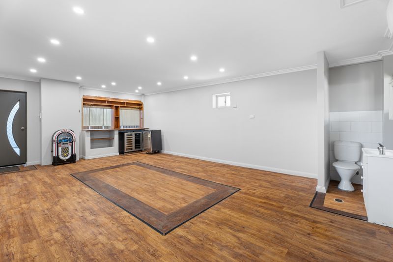 • Massive rumpus room / man cave / bar room + powder room