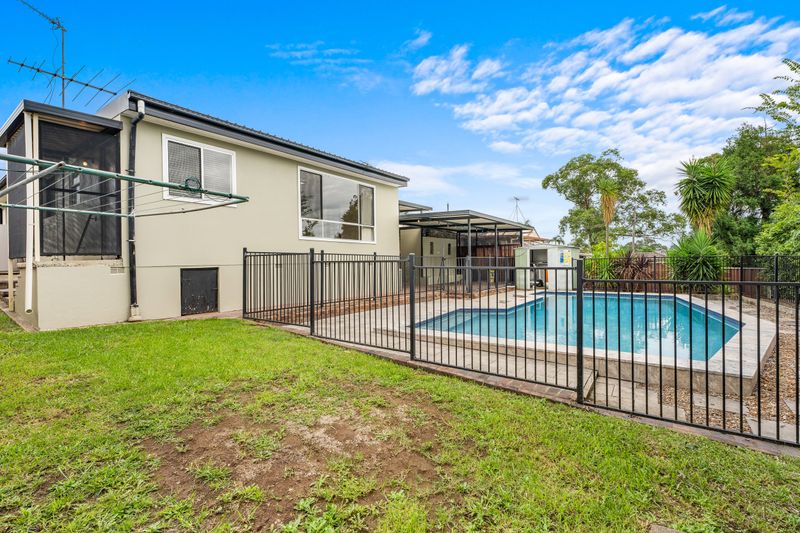 Featuring three good sized bedrooms, all complete with mirrored built-in robes and fans, the home is designed for easy living. A separate north facing family/dining room is filled with natural light and overlooks the inviting inground pool - the perfect setting for entertaining or relaxing while watching the kids swim.
