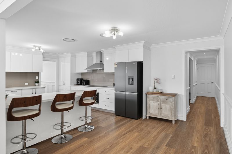 • Stunning modern kitchen with an abundance of bench space and storage cupboards equipped with quality appliances, 900mm electric cooktop and oven, and a convenient breakfast bar for casual meals