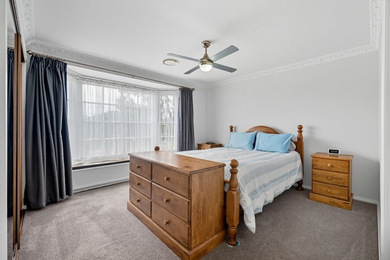 • Three spacious bedrooms on the main level, all fitted with built-in robes, ceiling fans, and cozy carpet flooring