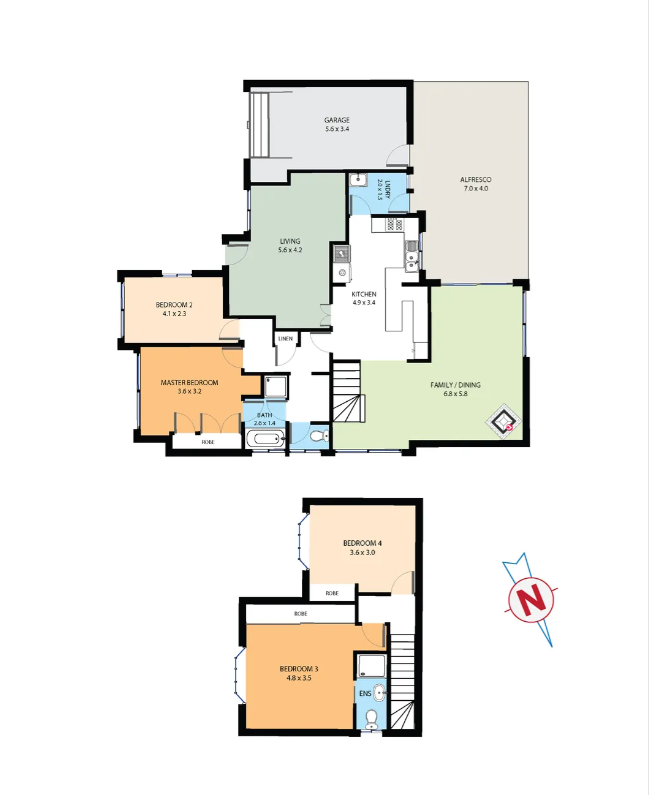• 4 generous bedrooms, 2 upstairs bedrooms with built-in robes,2 downstairs bedrooms, one with a built-in robe