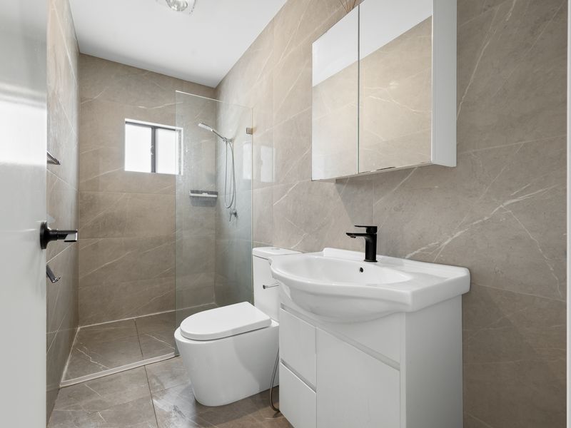 • Main bathroom located upstairs featuring floor-to-ceiling tiles and modern finishes and fixtures