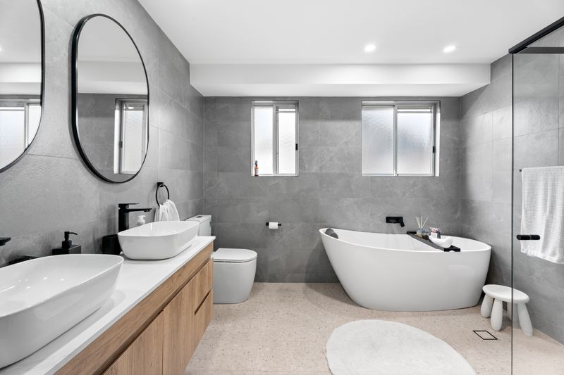 • Recently renovated main bathroom featuring freestanding bathtub, walk-in shower, dual vanity and floor-to-ceiling tiles