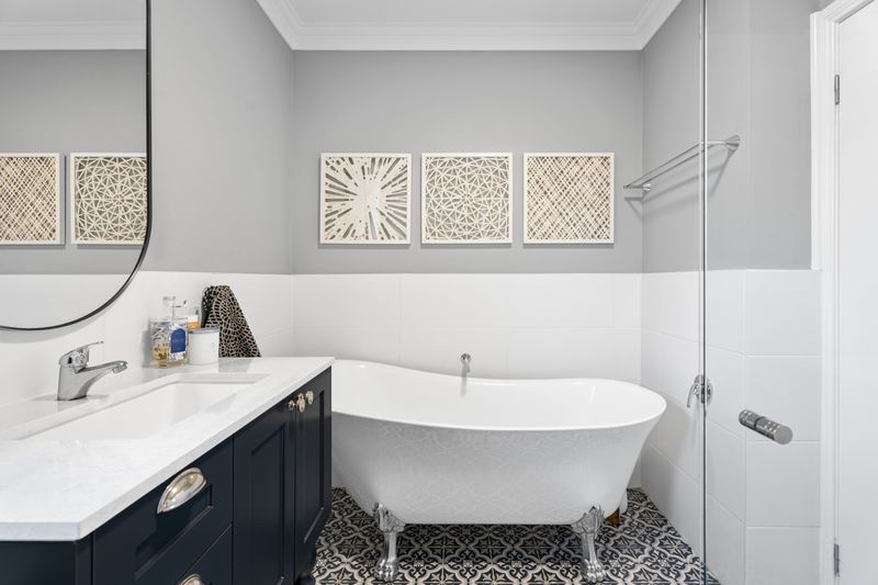 • Main bathroom with modern claw foot bath