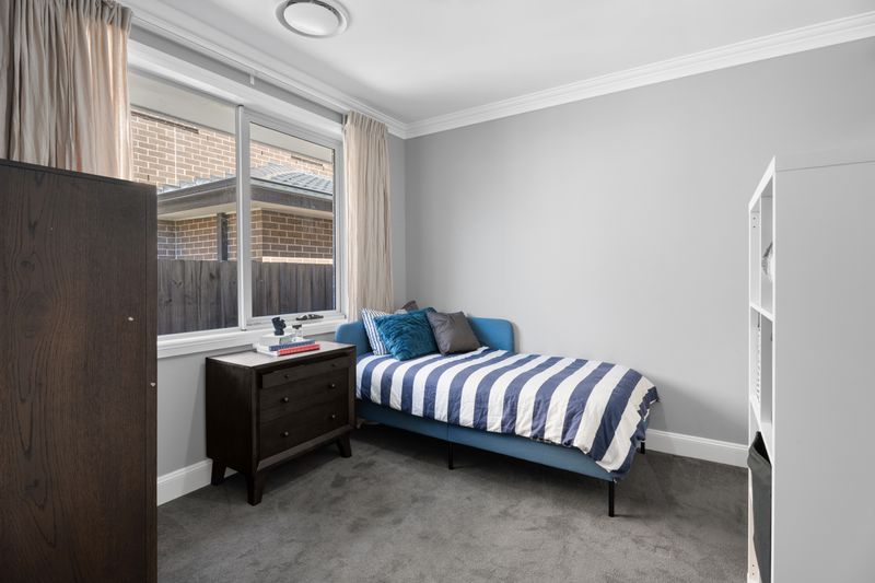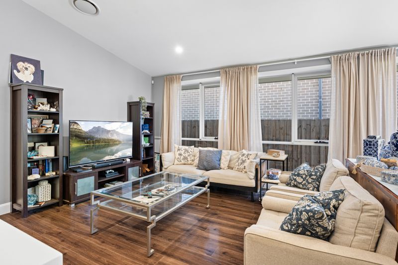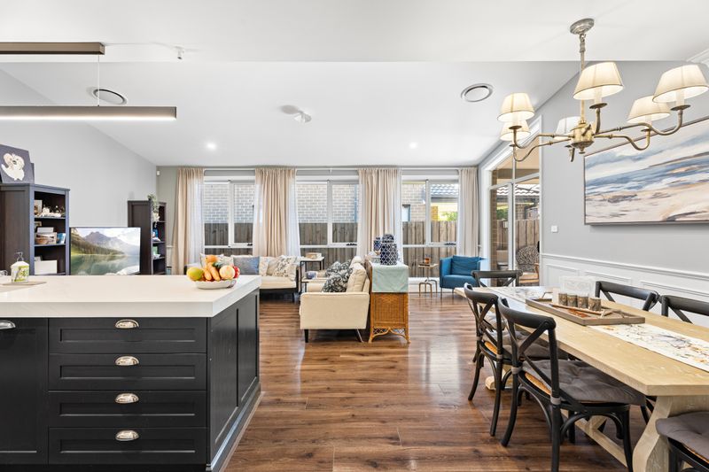 Flowing from the kitchen, the living zones are enhanced by raked high ceilings, custom windows that flood the home with natural light, a gas outlet and provision for a fireplace, and seamless access to the outdoor entertaining areas.