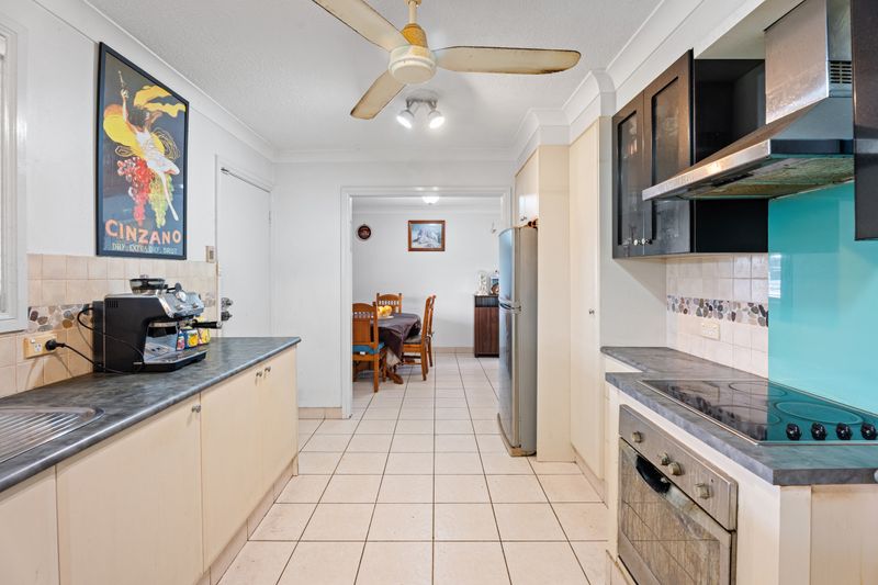 • Neat and tidy galley style kitchen, ample bench/cupboard space, electric cooking, ceiling fan